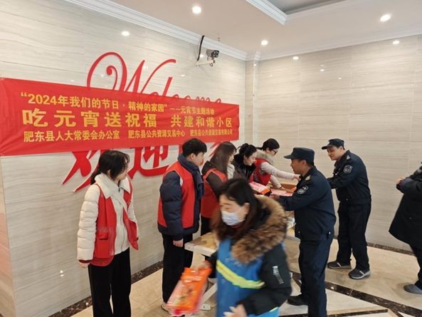 軟糯Q彈的熱湯圓,甜在嘴里,暖在心間。2月23日上午,肥東縣斌峰·和睦公館的環(huán)衛(wèi)工人品嘗著志愿者們端上來的熱湯圓,滿身寒意被驅(qū)散,心間洋溢著被牽掛的溫暖。“快吃碗湯圓暖暖身子吧?!薄疤崆白4蠹以?jié)快樂,你們辛苦了?!碑?dāng)日,和睦公館物業(yè)大廳充滿著歡聲笑語,其樂融融。